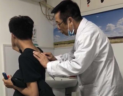 仔細查看初診小伙子背部白斑發(fā)展程度